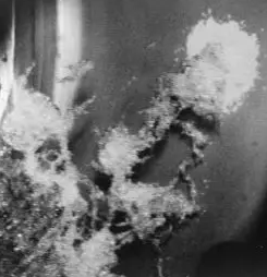 在高溫、高壓之下,水流會產生一些帶電現象。過流部件因汽蝕產生溫度差異,冷熱過流部件之間形成熱電偶,而產生電位差,從而對金屬表面發生電解作用(即電化學作用),金屬的光滑層因電解而逐漸變得粗糙。表面光潔被破壞后,機械剝蝕作用才有效的開始。這樣在機械剝蝕、化學腐蝕和電化反應等共同作用下,就更加快了金屬損壞速度。