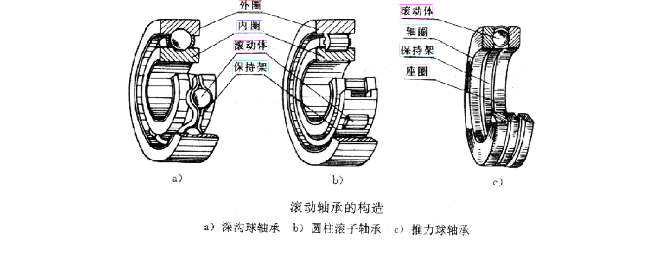 滾動(dòng)軸承一般由外圈、 內(nèi)圈、 滾動(dòng)體 和 保持架 四部分組成,嚴(yán)格的說是由外圈、內(nèi)圈、滾動(dòng)體、保持架、密封、潤滑油 六大件組成。簡單來說,只要具備外圈、內(nèi)圈、滾動(dòng)體就可定義為為滾動(dòng)軸承。按滾動(dòng)體的形狀,滾動(dòng)軸承分為 球軸承 和 滾子軸承 兩大類。