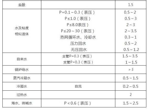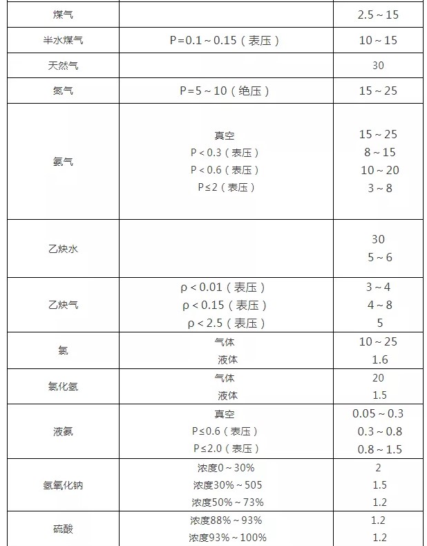 介質(zhì)的流速大,閥門通徑可以小些,但阻力損失較大,閥門易損壞。流速大,對易燃易爆介質(zhì)會(huì)產(chǎn)生靜電效應(yīng),造成危險(xiǎn);流速太小,效率低,不經(jīng)濟(jì)。對粘度大和易爆的介質(zhì),應(yīng)取較小的流速。油及粘度大的液體隨粘度大小選擇流速,一般取0.1~2m/s。