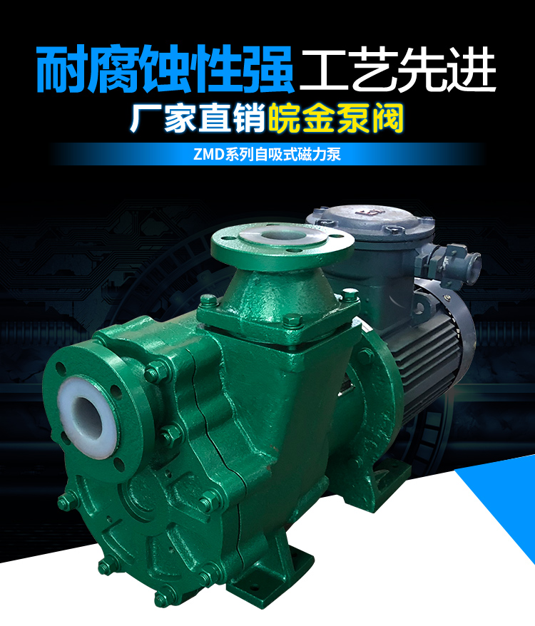 氟塑料磁力自吸泵又稱其為氟塑料自吸磁力泵、襯氟磁力自吸泵、耐腐蝕自吸化工泵,ZMD襯氟磁力自吸泵具有磁力泵和自吸泵的特性,同時兼具良好的自吸功能。按照國標(biāo)設(shè)計研發(fā)可以輸送低位介質(zhì)、罐車原料裝卸、氣液混合介質(zhì)。過流部件緊襯氟塑料,泵體為金屬材料,能夠承受管道重量。取消軸封,利用磁力間耦合驅(qū)動,不會滴漏現(xiàn)象,保障工況安全生產(chǎn)。